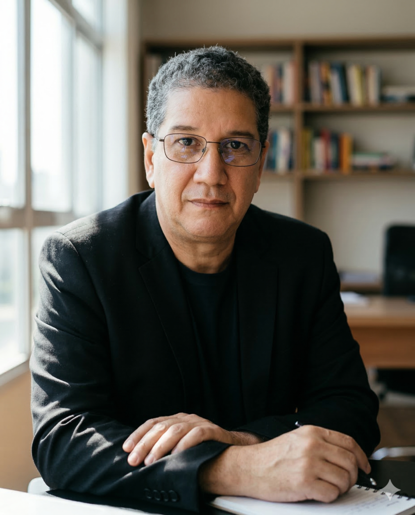 Estilo de cor inspirado em revista de negócios contemporânea, contraste moderado, tonificação neutra, grain fino tipo Portra 400, nitidez inteligente sem halos. Qualidade 8k, DOF realista, flare discreto de janela, reflexos de catchlight retangulares.